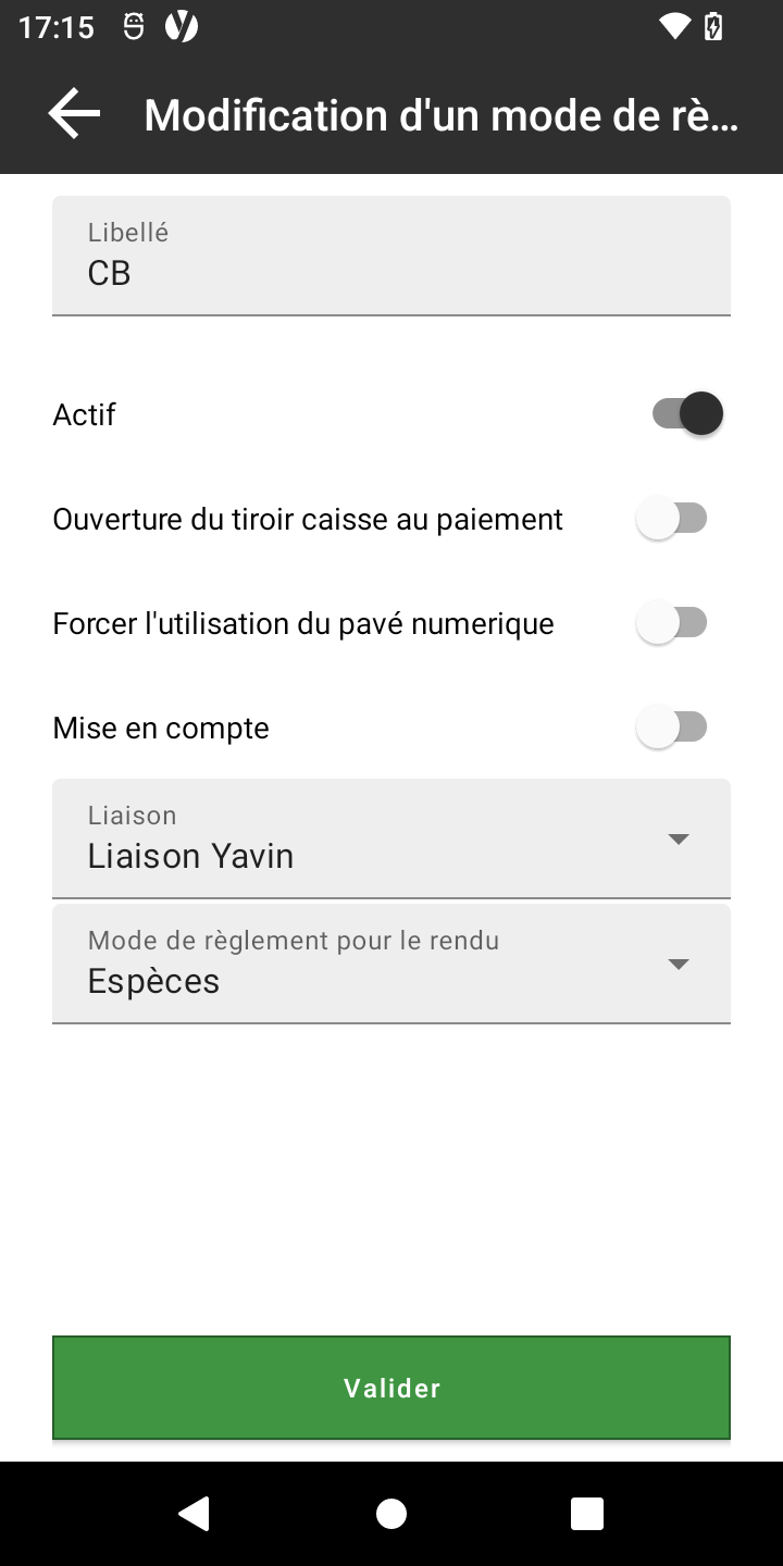 - Dans le champ Type, choisissez Connexion directe avec Yavin Pay.