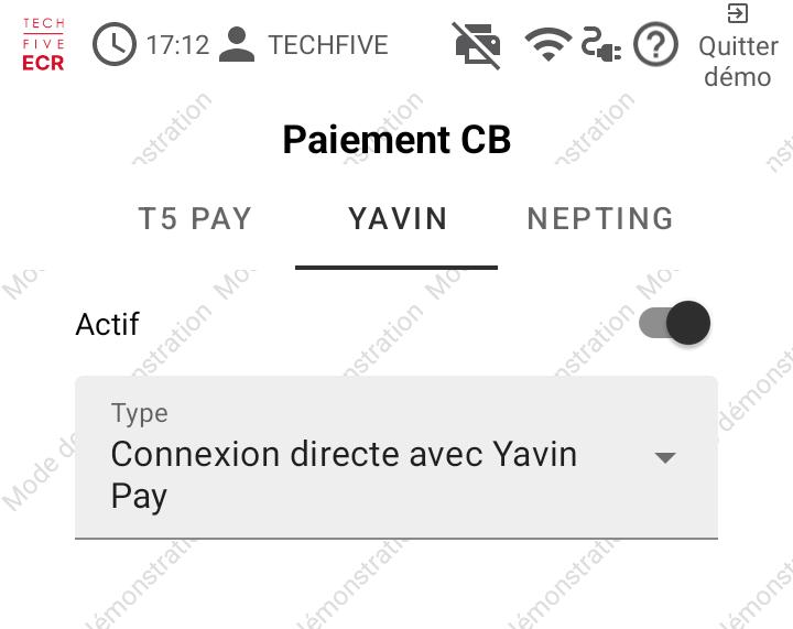 - L’interface SoftPos Yavin s’ouvre automatiquement pour procéder au paiement.