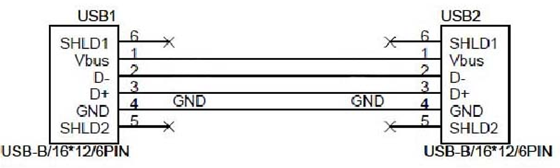- D- (Broche 2) et D+ (Broche 3) : lignes de données pour l'envoi et la réception des informations d'impression.
